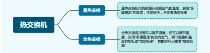 熱交換器也分為溫度和濕度調(diào)節(jié),如果是只進(jìn)行溫度交換的叫顯熱交換,把溫度和濕度都調(diào)節(jié)的叫全熱交換,顯然,全熱交換更舒適也更加節(jié)能,比顯熱交換領(lǐng)先,目前市面上主流的都是全熱交換的產(chǎn)品了。