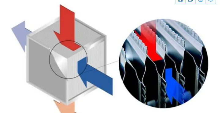 市面上應(yīng)用最多的換熱器是“間壁式換熱器”,熱交換器由一層層的平行芯片構(gòu)成,這些特殊的芯片流動著冷熱兩種氣流,冷的外界空氣進(jìn)入室內(nèi),而熱的室內(nèi)空氣會排出去,這兩股氣體相遇后,完成熱量交換,但并沒有混合。