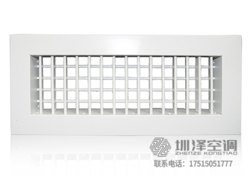 雙層百葉風口,廣泛應用于空調系統中作送風口,根據使用要求,風口后面可配制鋁制風量調節閥(人字閘),雙層百葉風口具有兩層相互垂直頁片調節水平和垂直頁片的角度,調整氣流擴散面,以改變射程,風口的外框寬度有寬邊框和窄邊框兩種,可用于特殊要求的通風系統中。