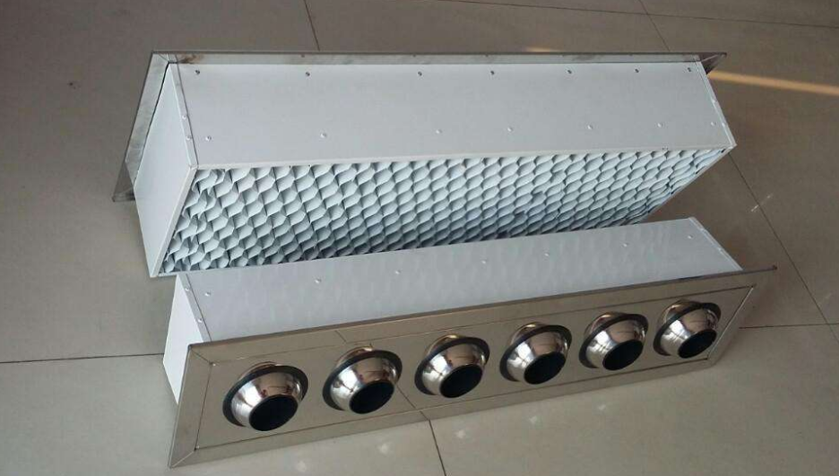 射流消聲風(fēng)口是指將射流部件,即具有消聲功能的射流部件消聲體,按照一定的間距和排數(shù)安裝在矩形(或狹縫形)和圓形殼體內(nèi),形成矩形和圓形消聲風(fēng)口。或者將射流組件消音體和照明燈組合在一起,形成集供氣、消音和照明三大功能于一體的燈式消音風(fēng)口。它由中國兵器工業(yè)第205研究所開發(fā),并獲得國家專利。