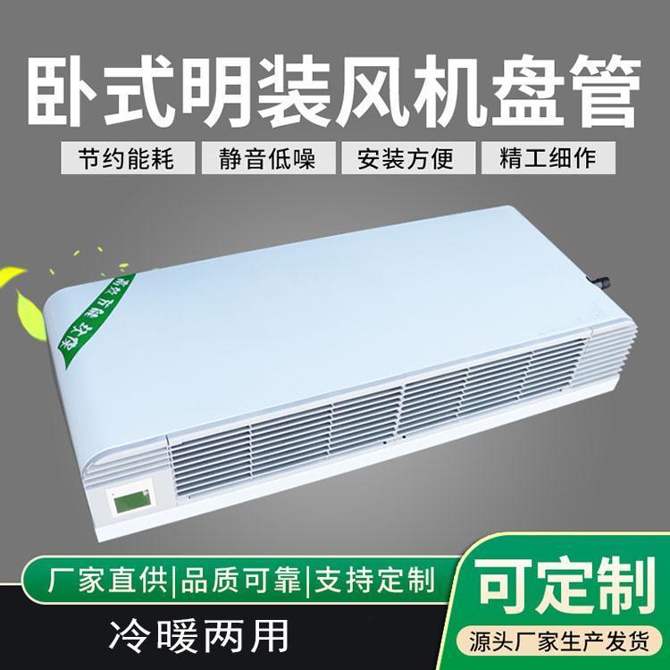 臥式明裝風機盤管機組主要由風機、熱交換器(盤管)、凝水盤、殼體及控制器組成,它適用于集中式空調系統。設計先進、品種齊全、性能優越,用途廣泛,通常用于要求噪聲小,溫度調節靈活的各種賓館、公寓、飯店、醫院、商業大樓等。