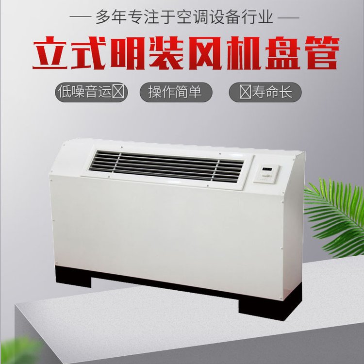 立式明裝風機盤具有管效率高,能量足,風量大,噪音低,安全可靠,壽命長的優點,是明裝風機盤管。